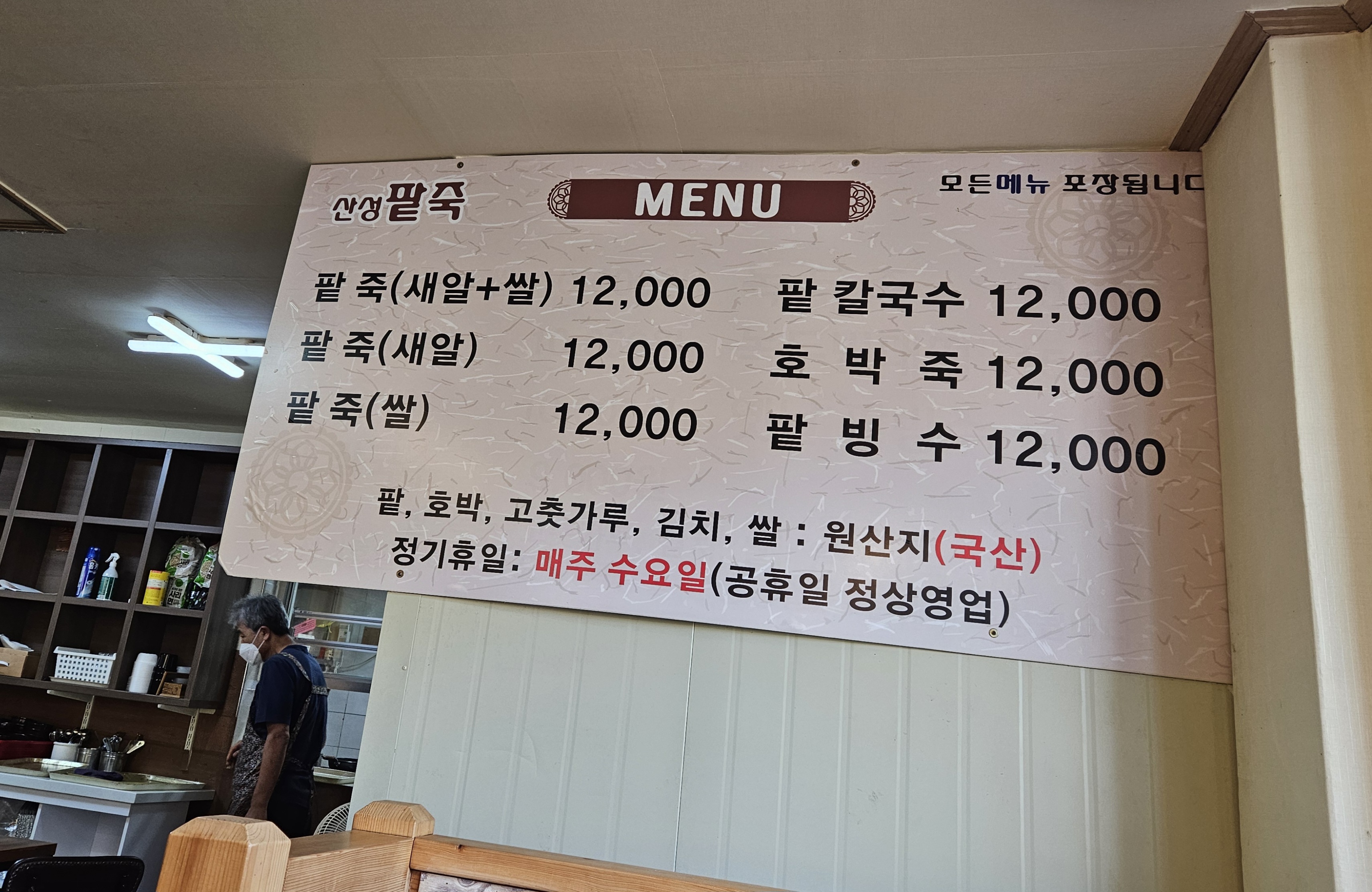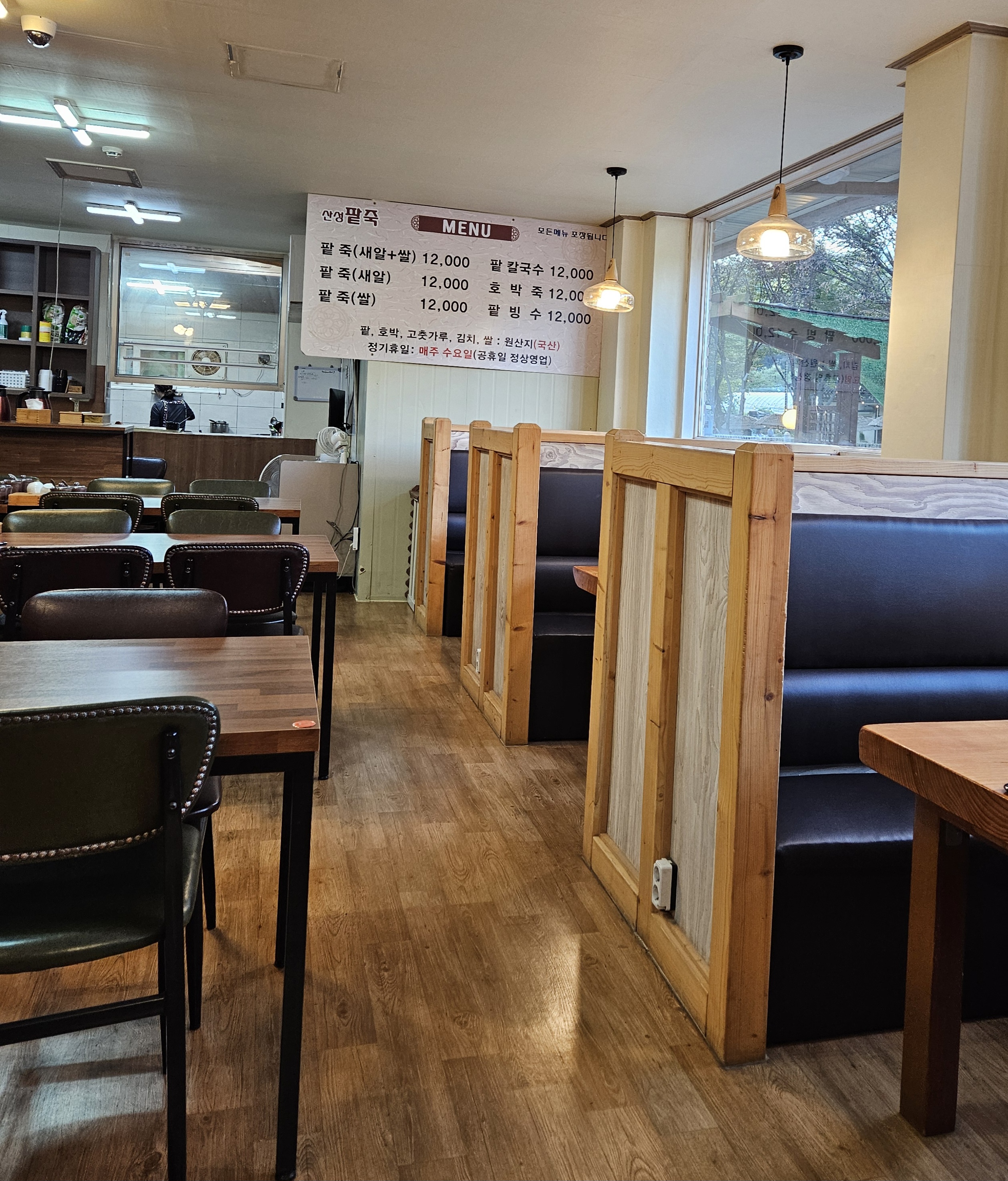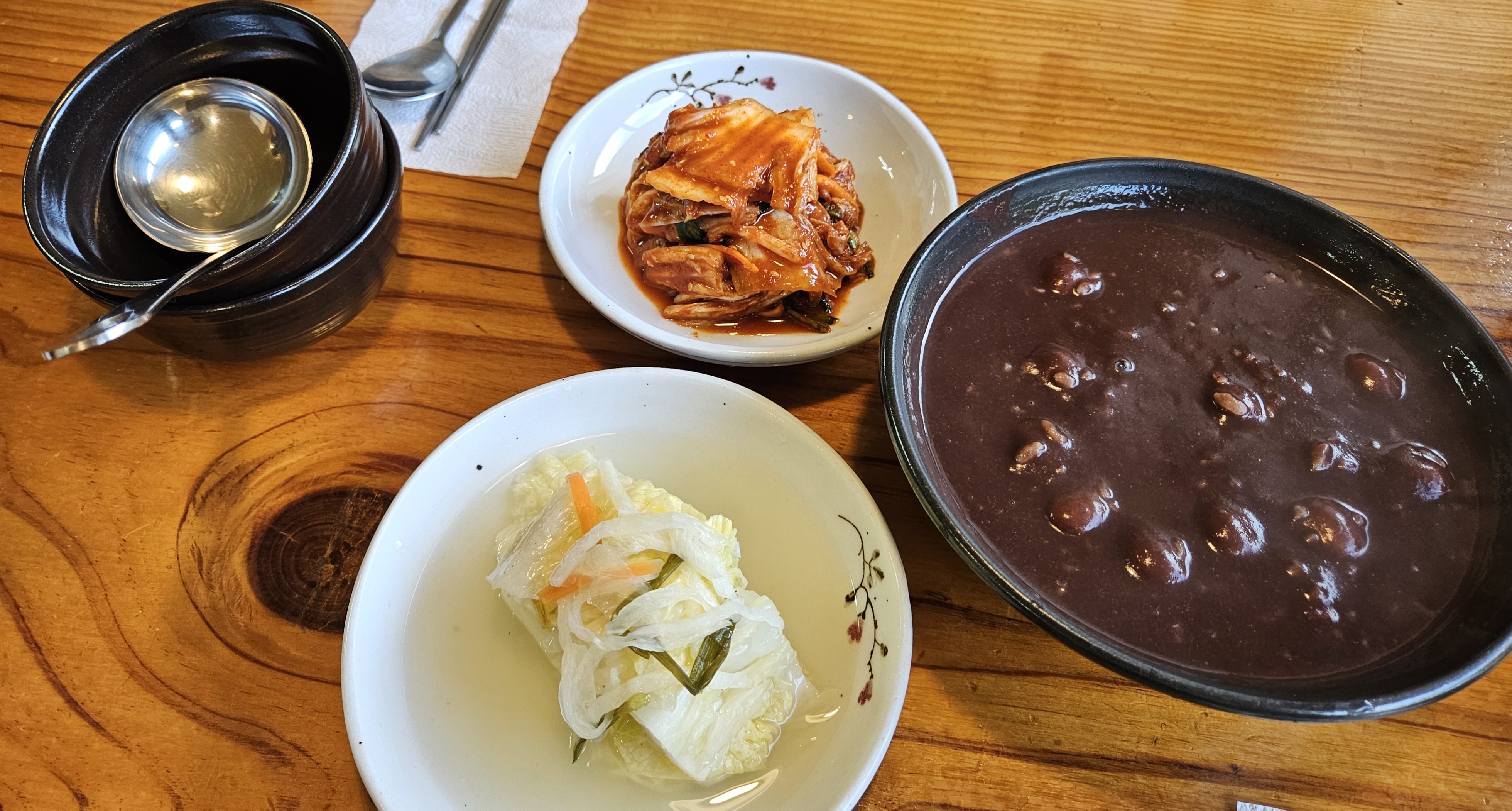 산성팥죽집은 팥죽 맛집으로 유명한 찐팥죽집인데, 우리는 팥죽(새알+쌀)과 팥칼국수를 주문했다. 두 가지 맛을 다 보기 위해 주문한 것이다.
