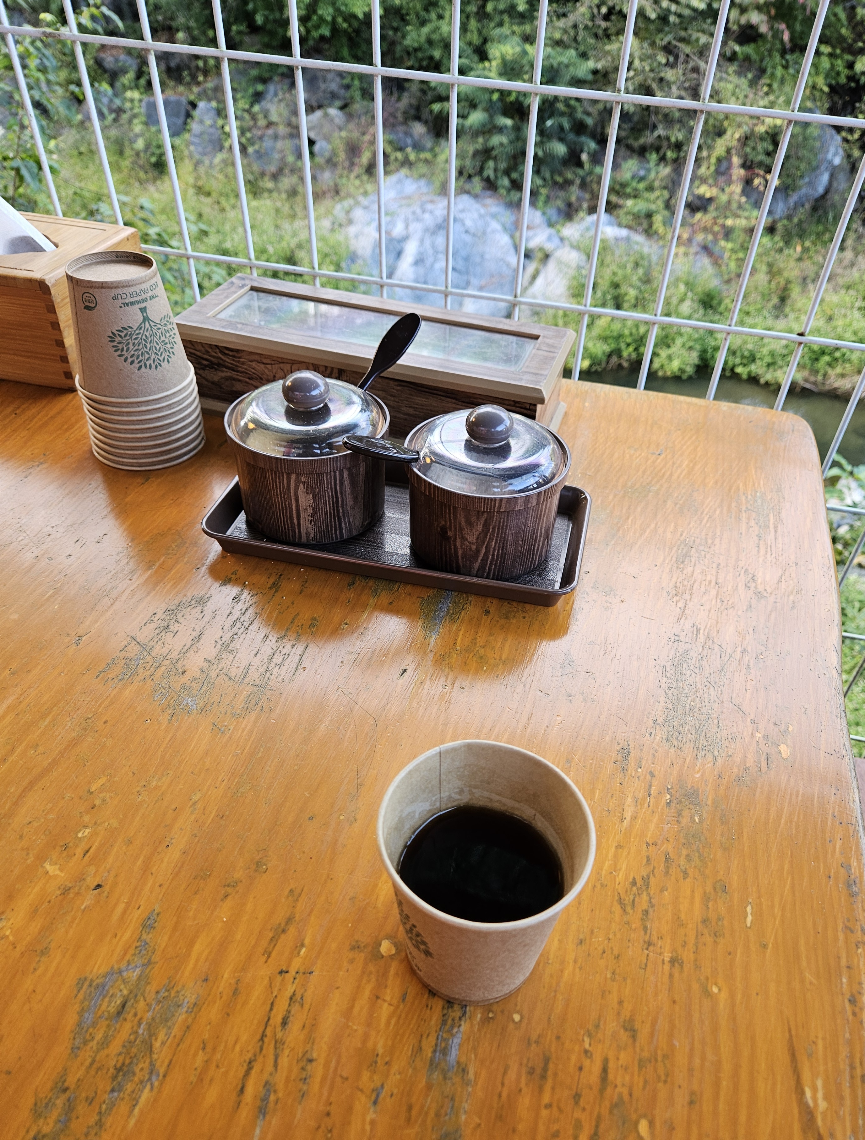 식사 후 야외 테이블에서 커피 한잔과 함께 가을의 정취를 느끼면서 일행과 담소를 나눴다.