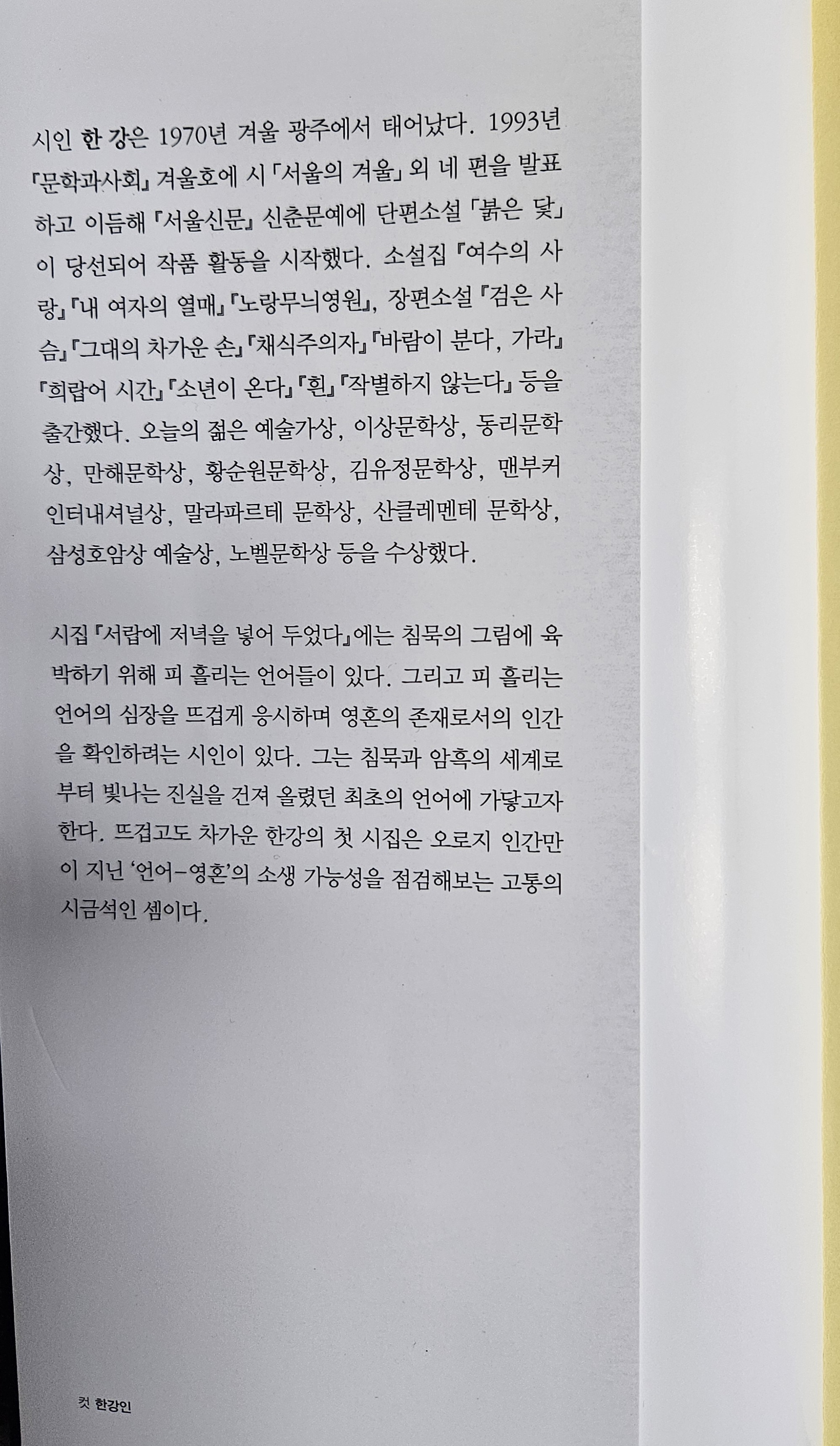 (한 강 시집, 문학과지성사, 2024.10.20. 초판 51쇄)