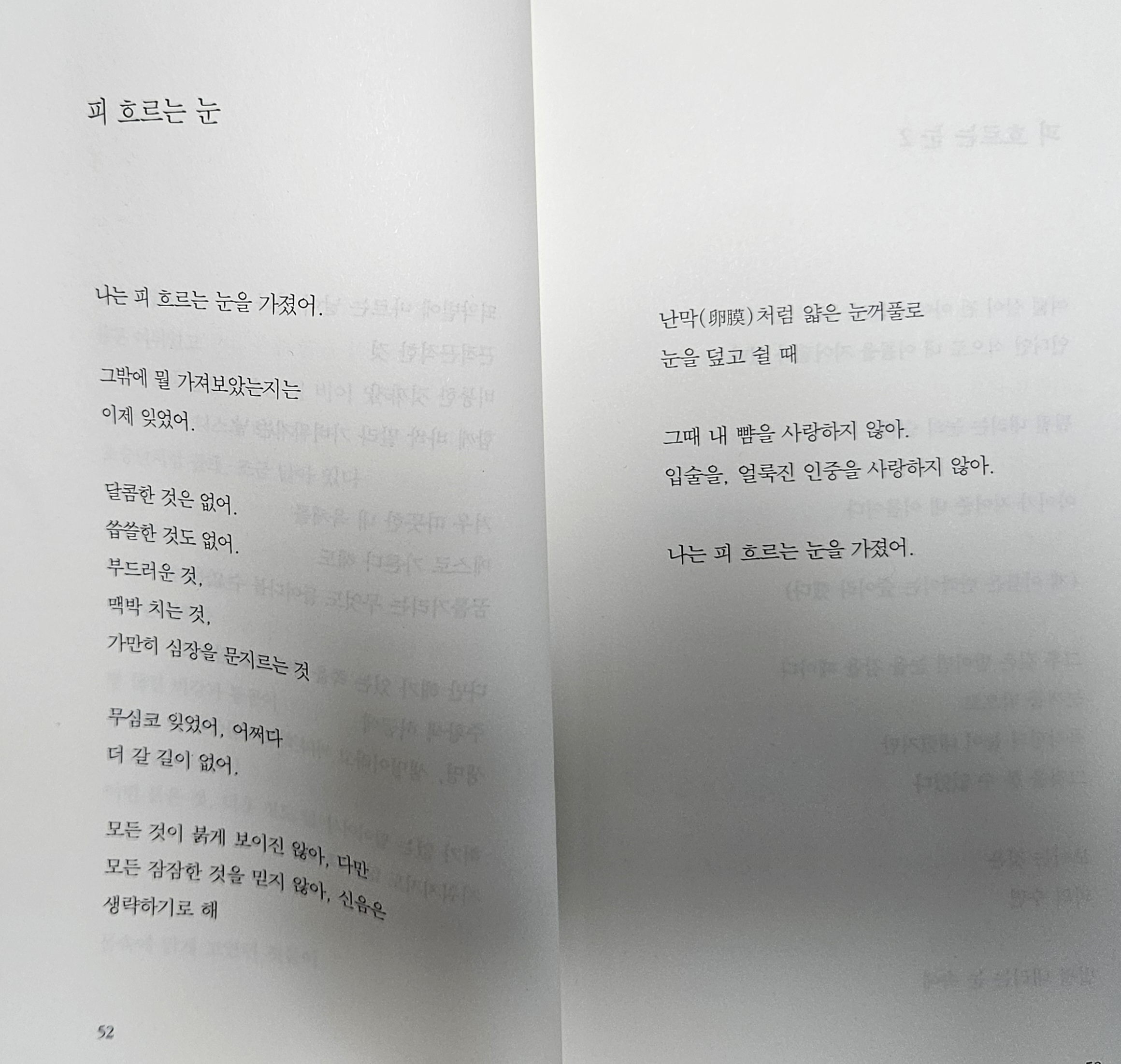 피 흐르는 눈 / 한강 시인