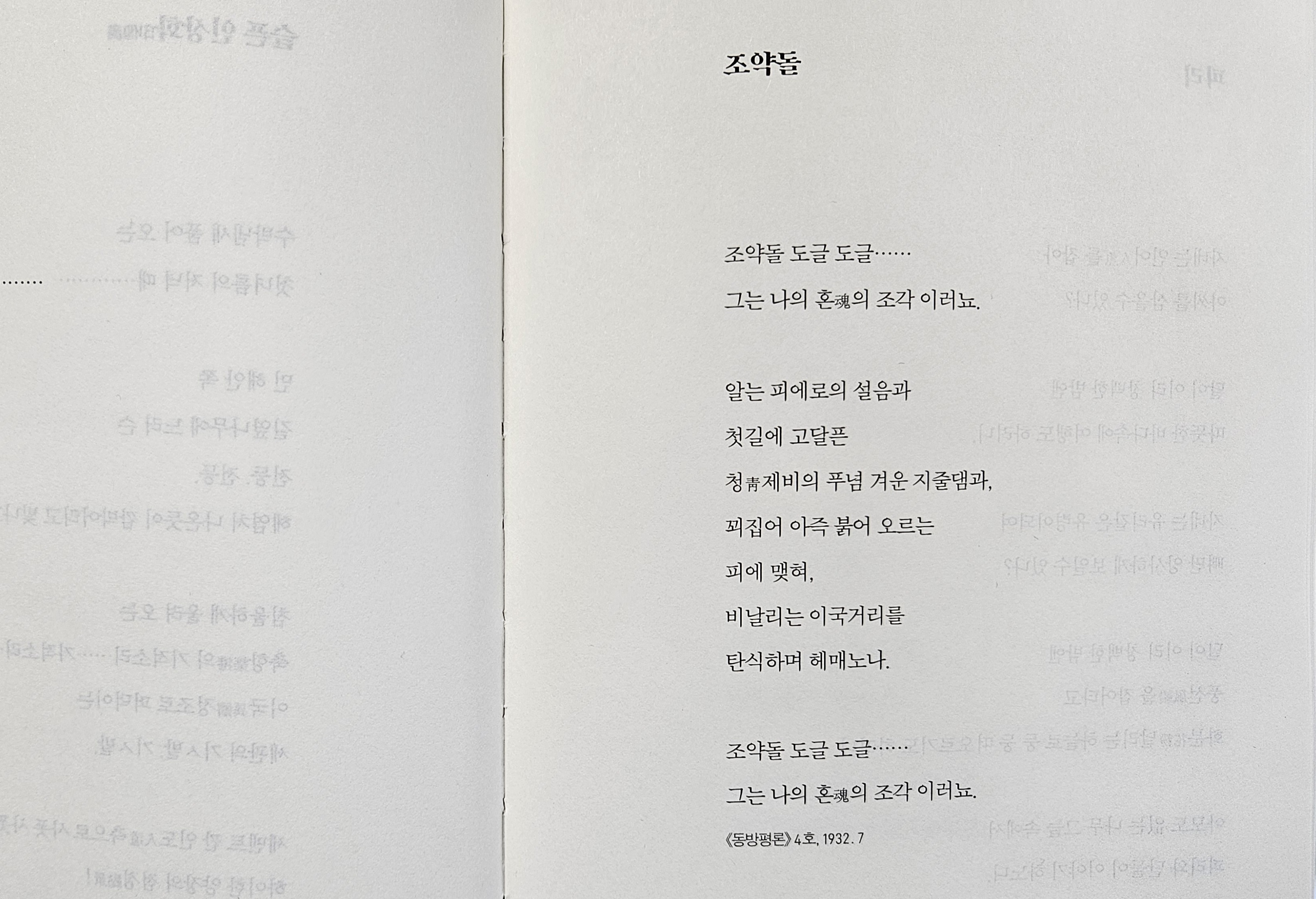 ...... 힌 물결 피여오르는 아래로 바독돌 자꼬 자꼬 나려가고,