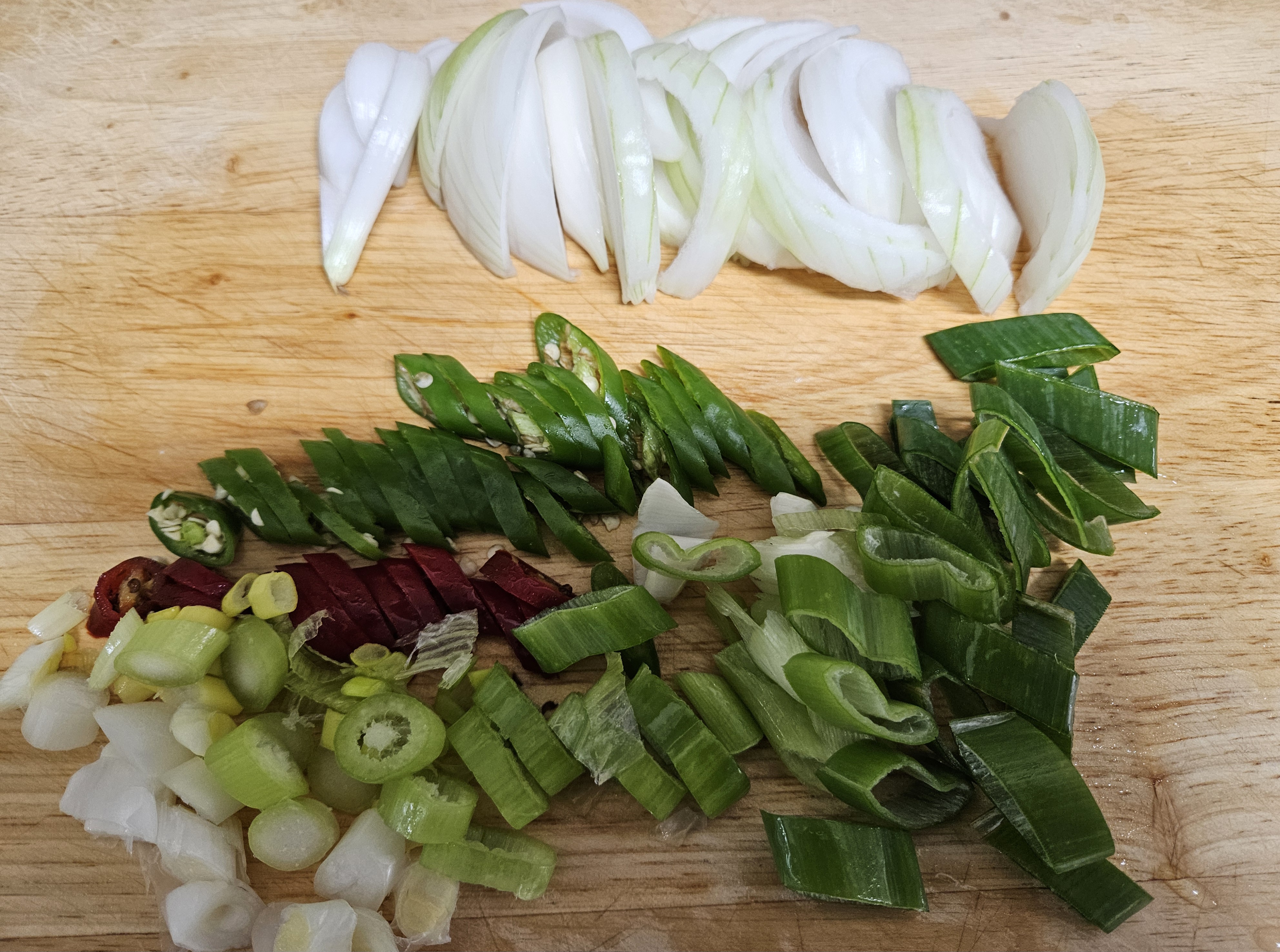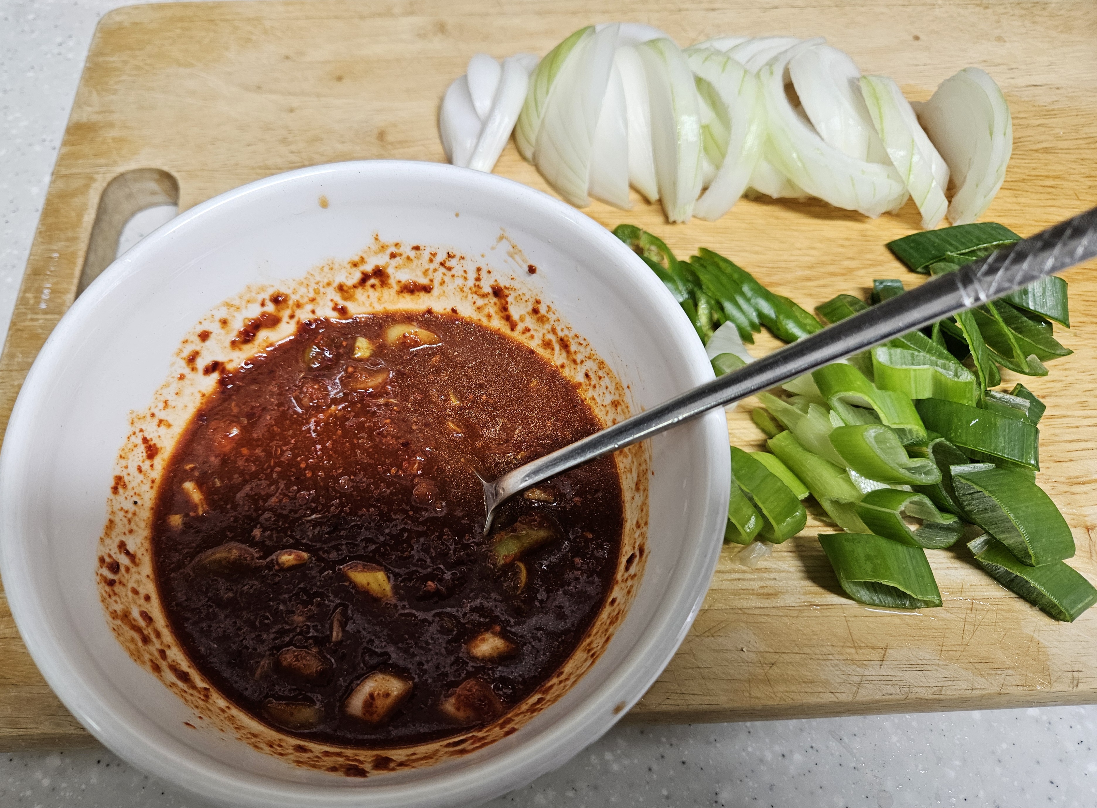 양파와 대파, 청양고추, 홍고추를 송송 썰어 둔다.