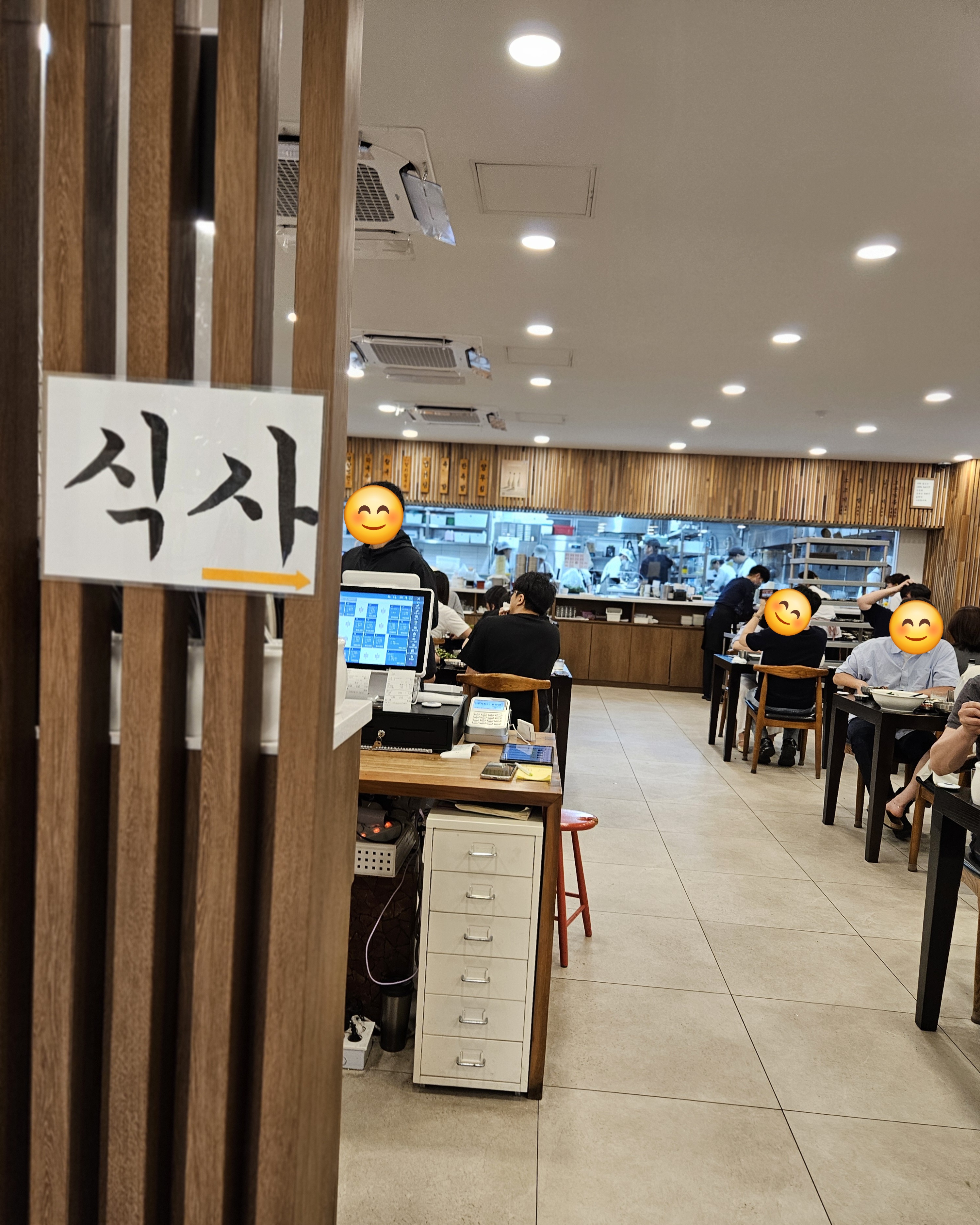 포장주문하기 위해 밖에서 대기하는 사람을 뚫고 들어가 보니, 많은 사람들이 식사를 하고 있었는데, 식당 내부는 아래 사진에서 보는 바와 같이 비교적 깔끔하면서도 꽤 넓었고 환한 분위기였다. 주방도 오픈되어 있어서 신뢰감을 주기에 충분했다.