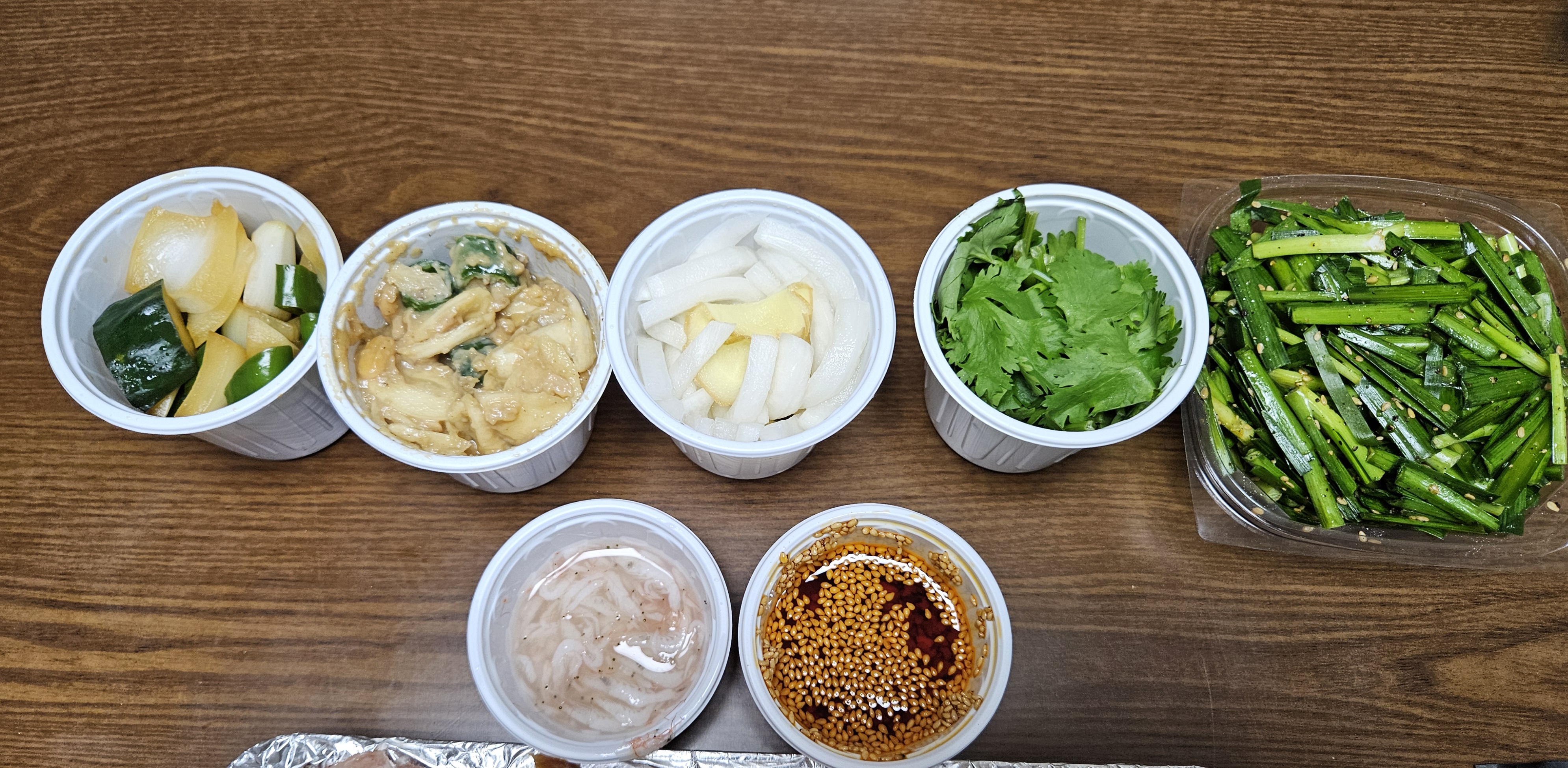 비싼 상추도 넉넉히 주고, 양파고추간장피클, 새우젓, 향이 독특한 고추기름으로 만든 특제소스와 양념된 마늘, 무채, 부추무침, 고수 등도 족발과 함께 포장되어 있다. 특히 향이 독특한 고수도 같이 들어있다는 것도 특징이다.