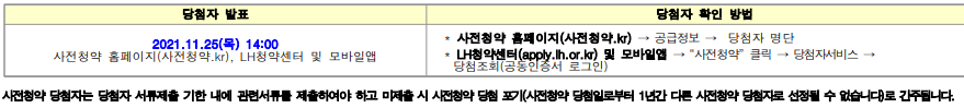 당첨자 발표는 2021.11.25(목) 14:00에 사전청약 홈페이지에서 한다.