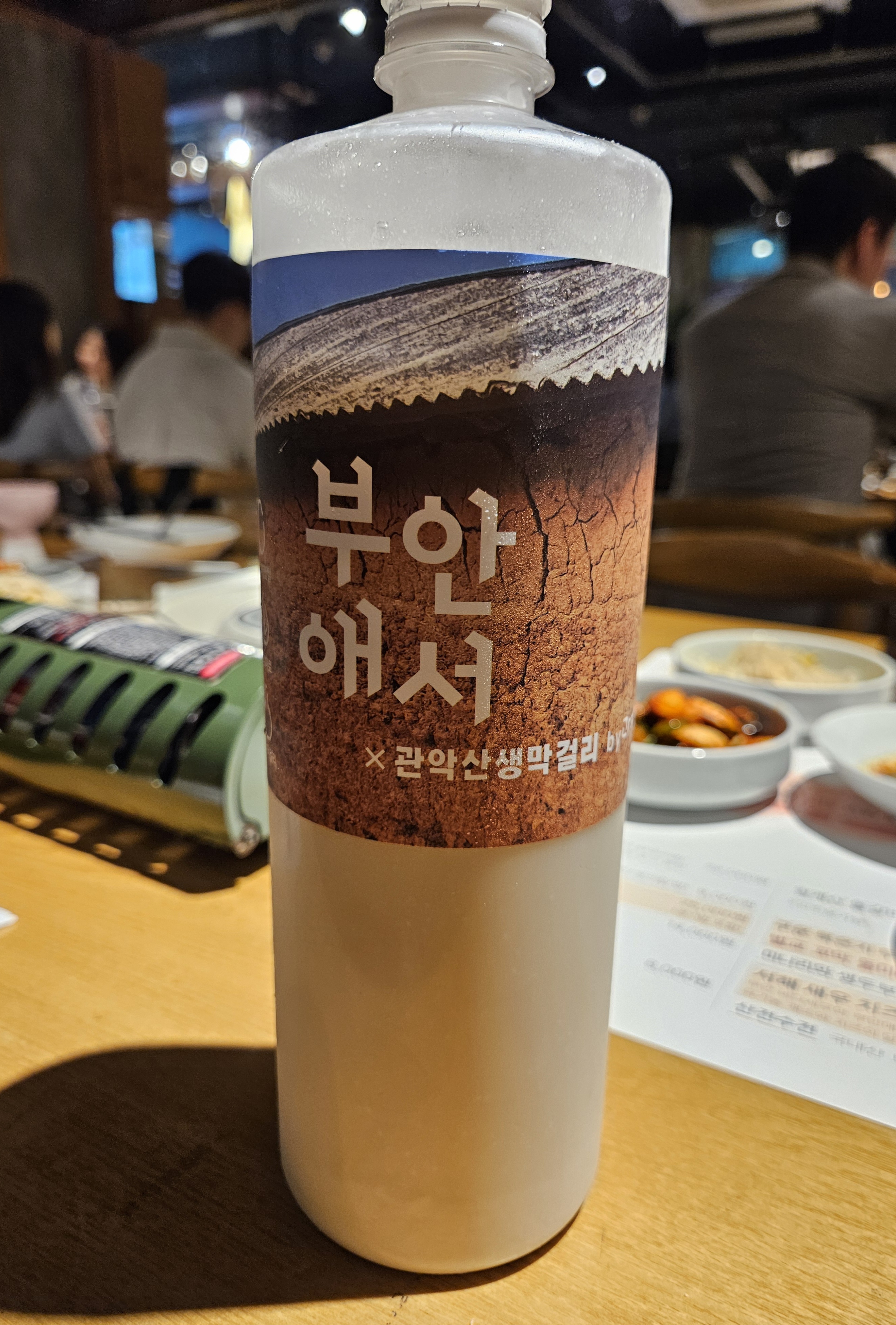 전에는 막걸리가 빠질 수 없기에 이 식당의 프리미엄 막걸리인 부안애서 생막걸리도 함께 주문하였다. 식당 자체 막걸리인 부안애서 생막걸리는 시중 막걸리와 달리 달지 않고 전통 막걸리처럼 걸쭉한 느낌이라 부드러워 물리지 않고 편하게 마실 수 있었다.
