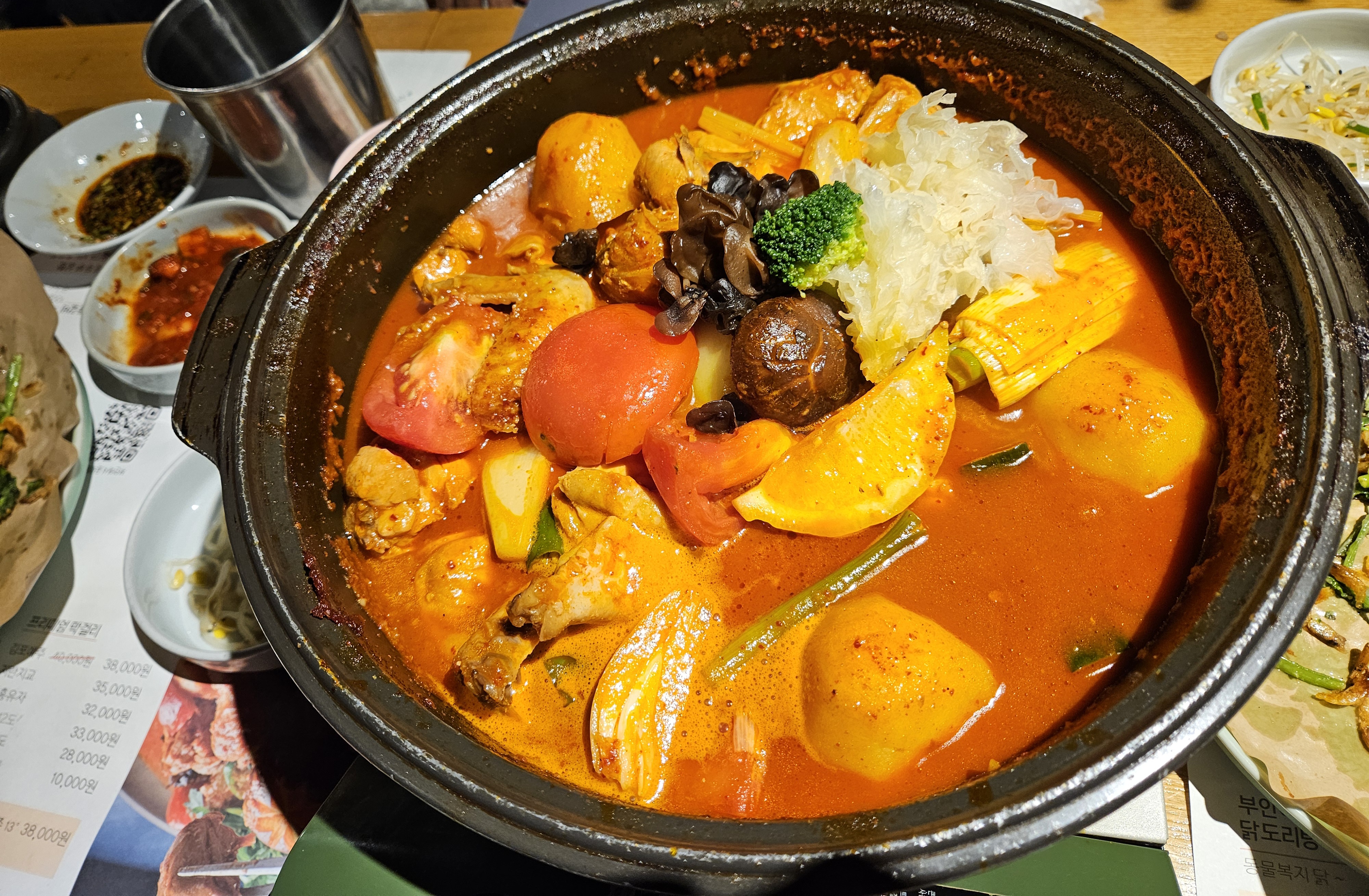 이 집 닭도리탕은 좀 특이하다. 퓨전식 요리로 토마토와 두툼하게 썰어 넣은 감자, 버섯, 파프리카, 레몬 등을 푸짐하게 넣었는데, 겉으로는 빨갛게 보여 매울 것 같지만 토마토를 넣었기에 텁텁하지 않고 맵거나 자극적이지 않으면서 중독성이 있는 맛으로 입안 가득 퍼지는 부드럽고 담백하고 닭고기와 깔끔하고 감칠맛 나는 깊은 향을 느낄 수 있다.